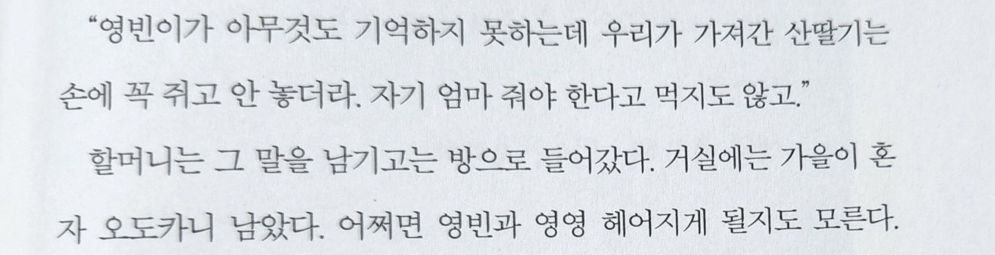 이를 엄마에게 말하고 어머니가 영빈이를 만나고 옵니다. 그러면서 영빈이가 아프다고... 백발의 할아버지가 된 영빈은 나이가 들어 아파서 기억을 잃었다고 합니다.