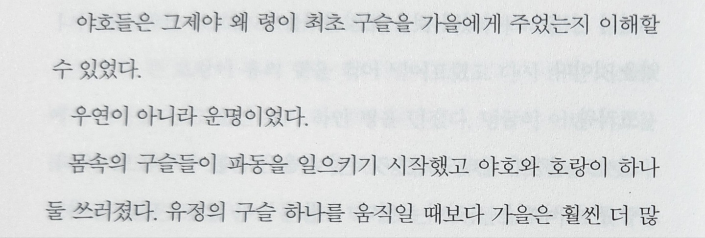 그리고 이런 가을을 위로하기 위해 야호족의 우두머리인 령이 찾아옵니다. 그리고 종종 하는 구슬에 대한 이야기를 해주죠.